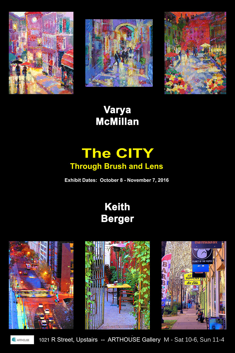 October 2016 – “The City” “Evening Commute” by Keith Berger “Reflections I” by Varya McMillan “Side Patio Mulvaneys” by Keith Berger “Shadows Between” by Varya McMillan Gallery Second Saturday