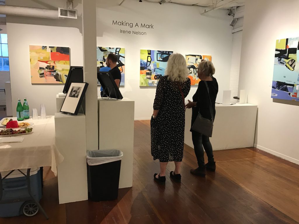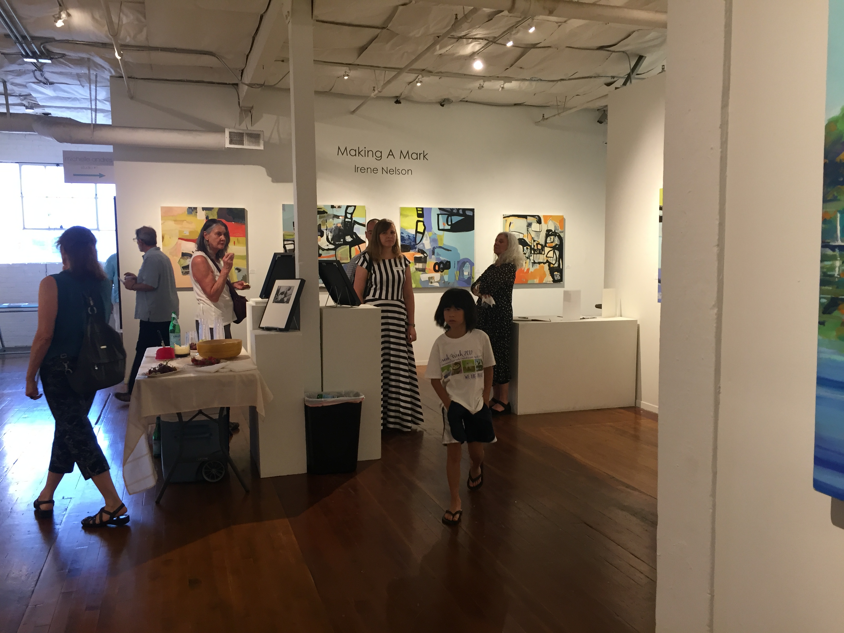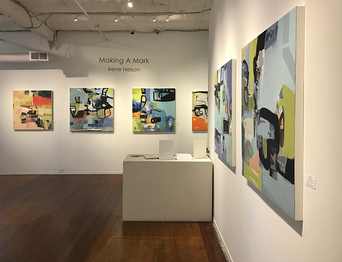 “Making a Mark” showcases bold, vibrant paintings that integrate color, free mark-making and fragmented collaged imagery from original photography and print-making work.